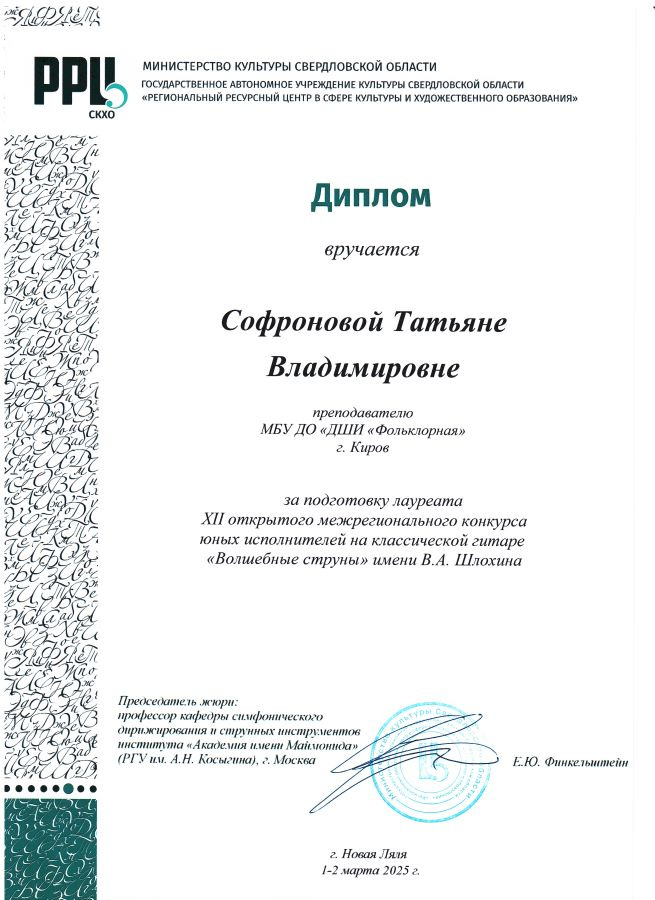 Итоги XII Открытого межрегионального конкурса юных исполнителей на классической гитаре «Волшебные струны» им. В.А. Шлохина