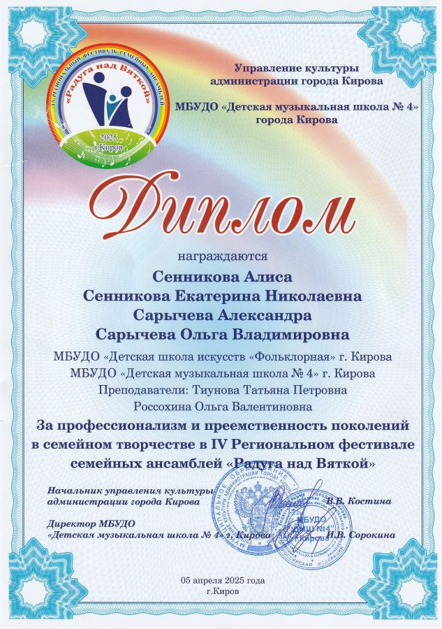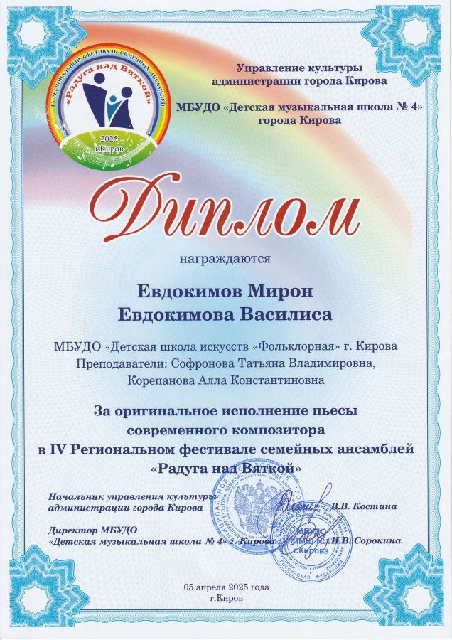 5 апреля в Детской музыкальной школе №4 города Кирова состоялся IV Региональный фестиваль семейных ансамблей «Радуга над Вяткой».