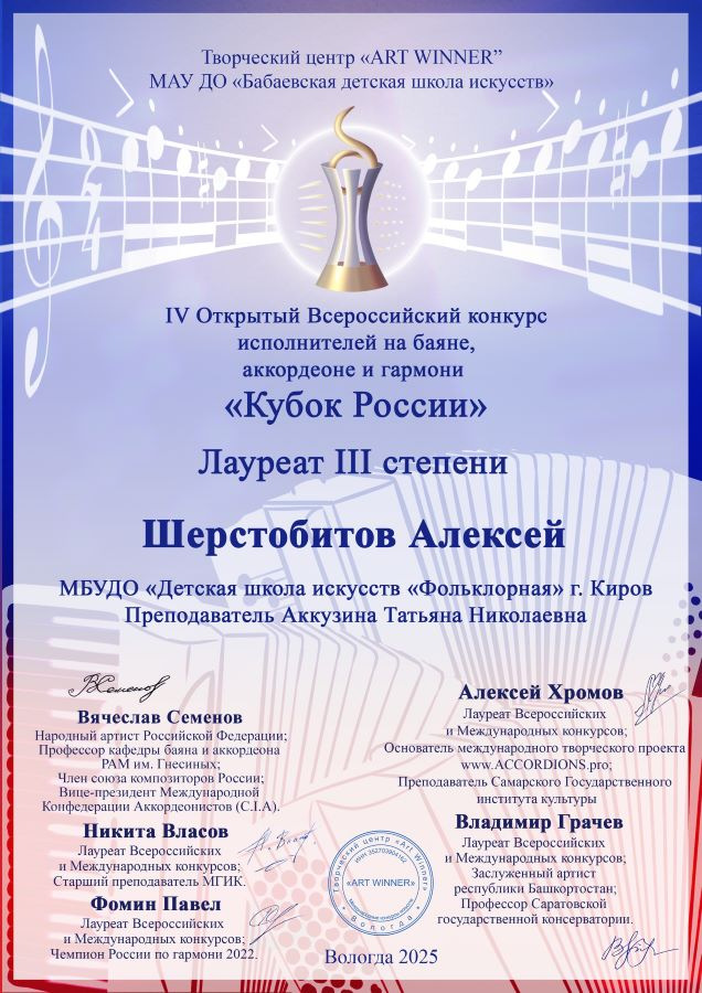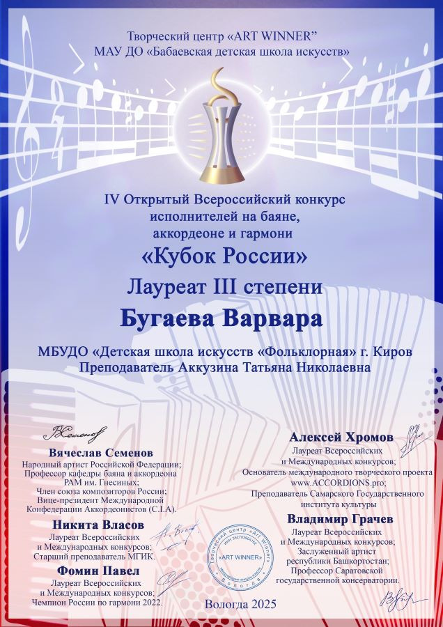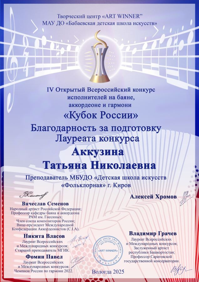 Итоги IV Открытого Всероссийского конкурса исполнителей на баяне, аккордеоне и гармони «Кубок России»: