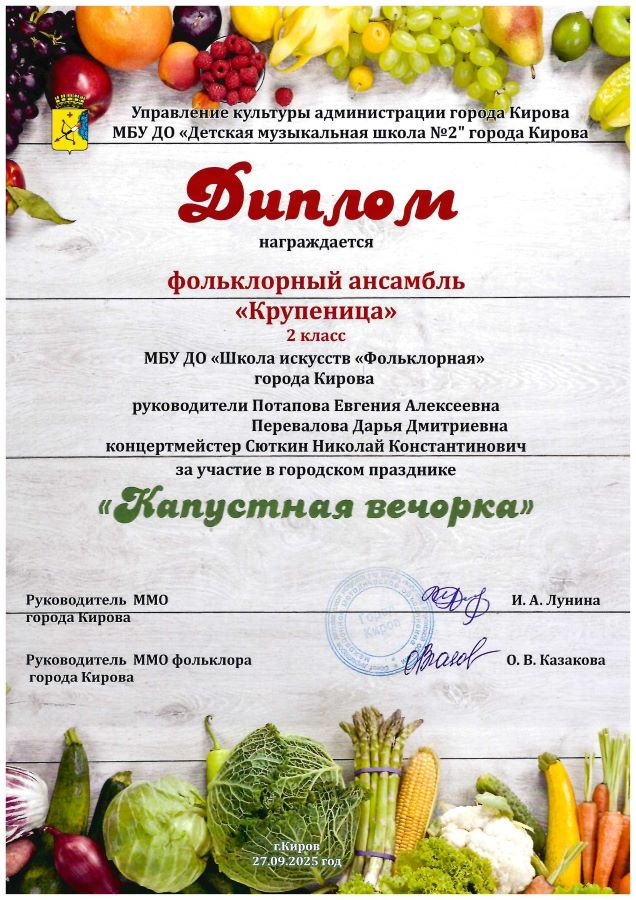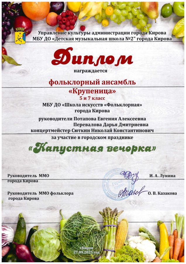 27 сентября в 12:00 прошло мероприятие «Капустные посиделки» в ДМШ №2, приуроченное к празднику осени - Осенинам.