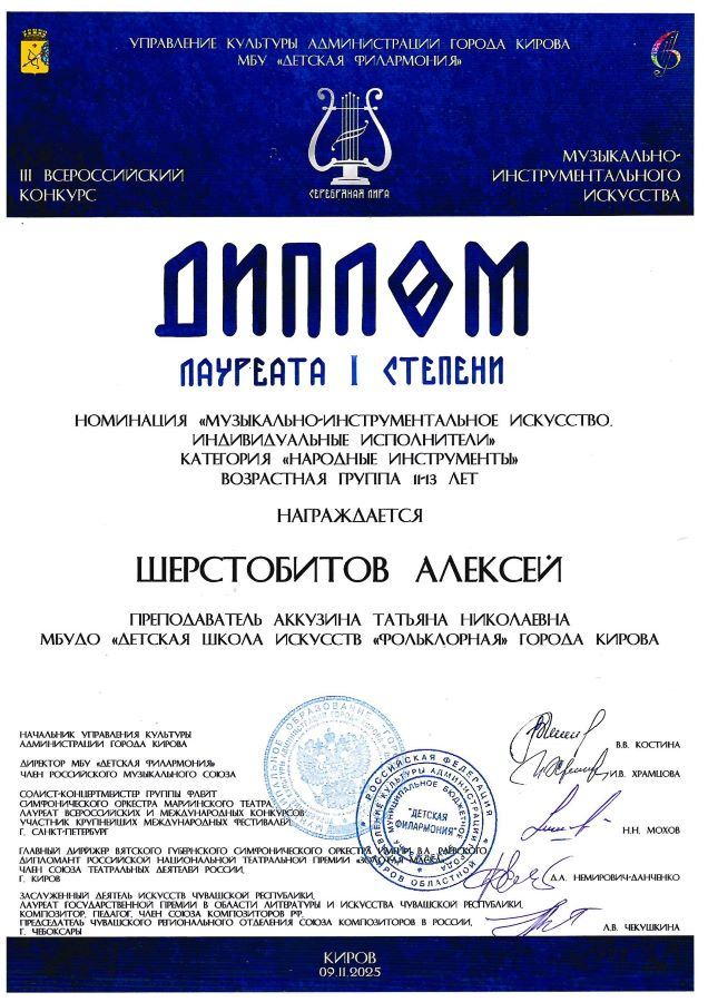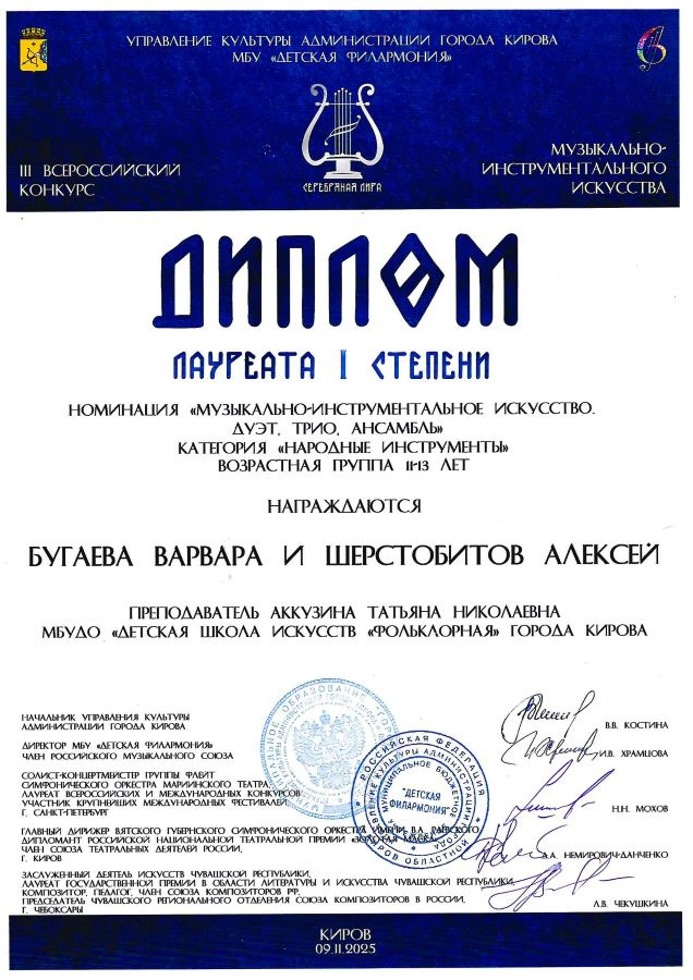 9 ноября 2025 г. на базе Детской филармонии прошел III Всероссийский конкурс музыкально-инструментального искусства «Серебряная лира»