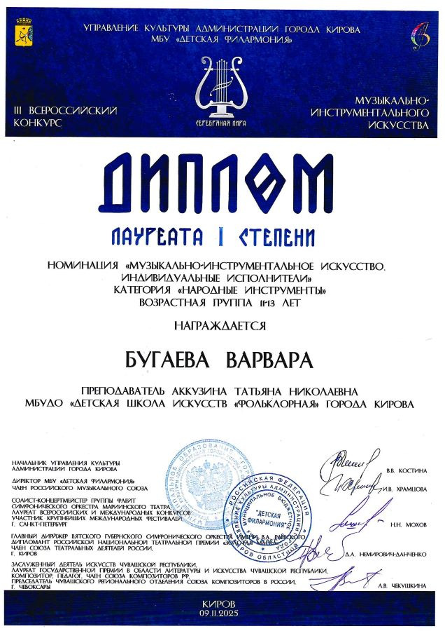 Бугаева Варвара - Лауреат I степени (преп. Аккузина Т.Н.)
