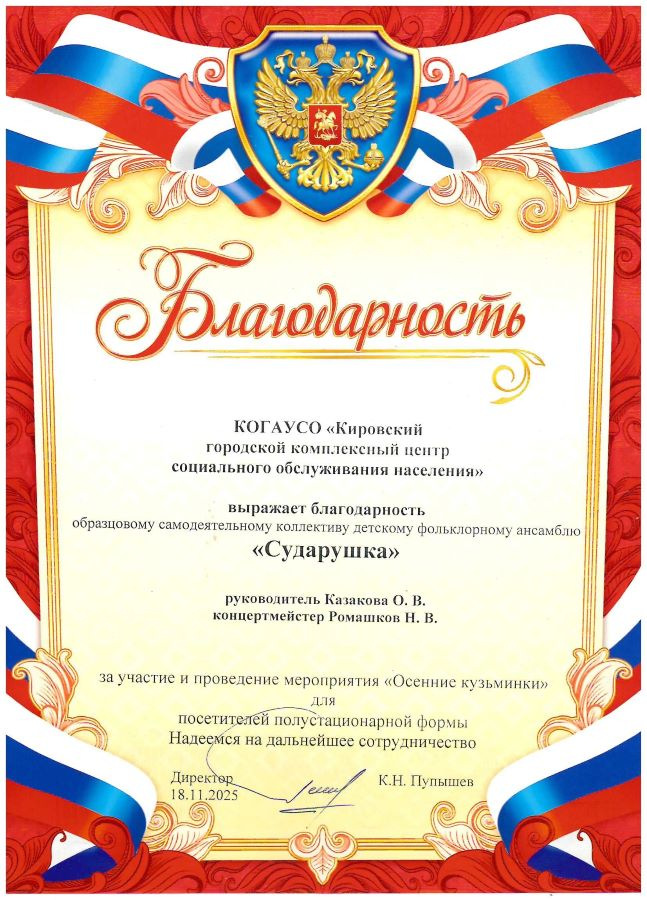 18 ноября в 11:00 в Центре развития творчества «Лабиринт» (ул. Морозовская, 66) состоялось мероприятие «Осенние кузьминки» для посетителей «Кировского городского комплексного центра социального обслуживания населения»