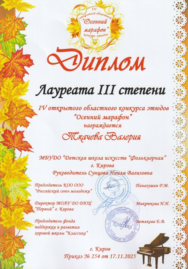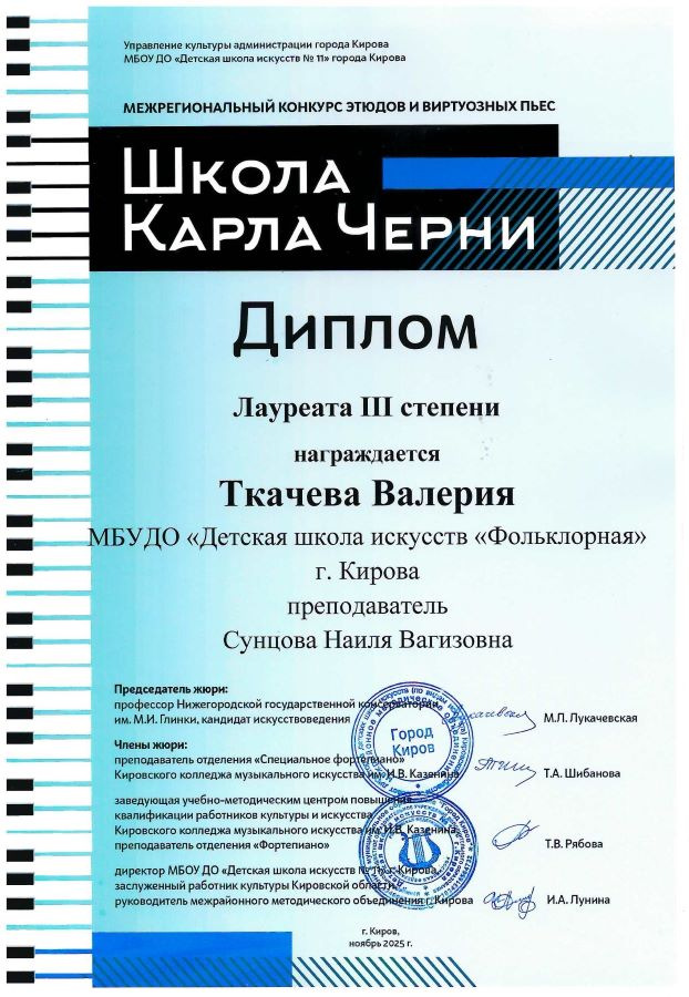 Лауреат III степени - Ткачева Валерия (преп. Сунцова Н.В.)