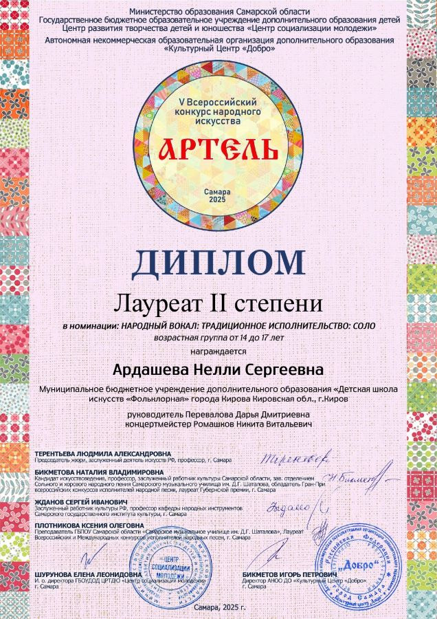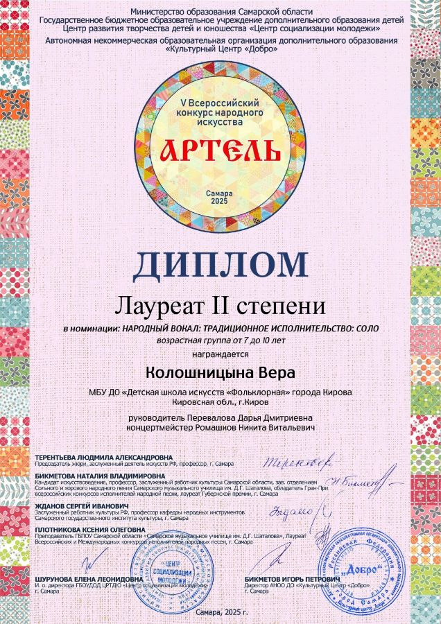 Итоги V Всероссийского конкурс народного искусства «Артель» (г. Самара):