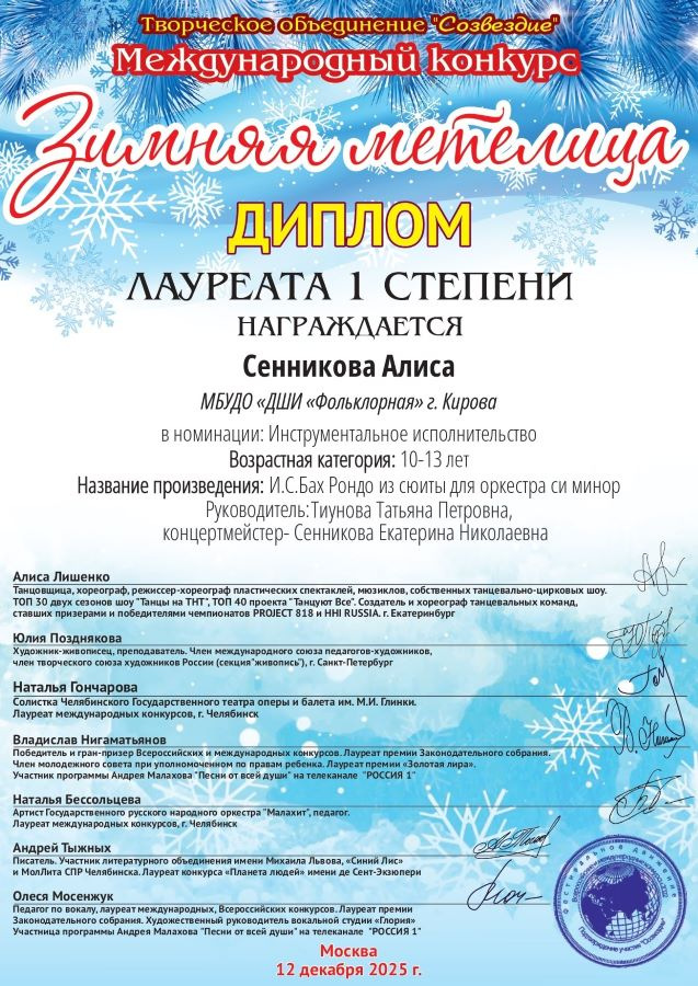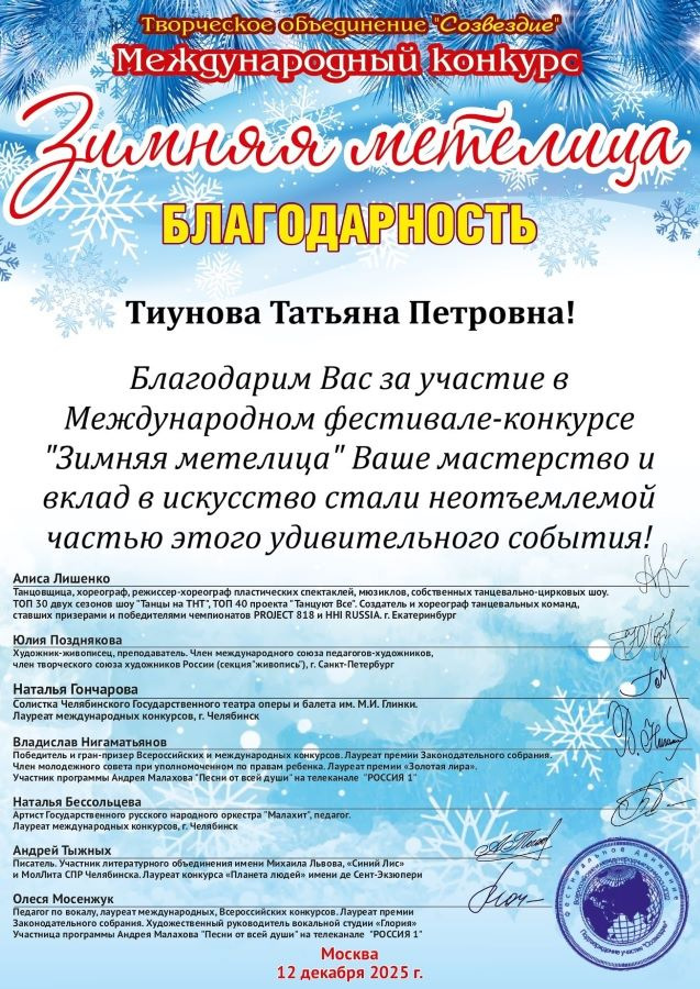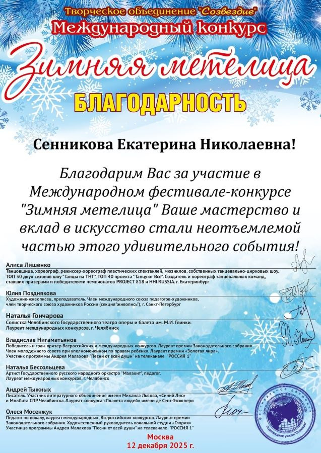 Итоги Международного конкурса «Зимняя метелица»