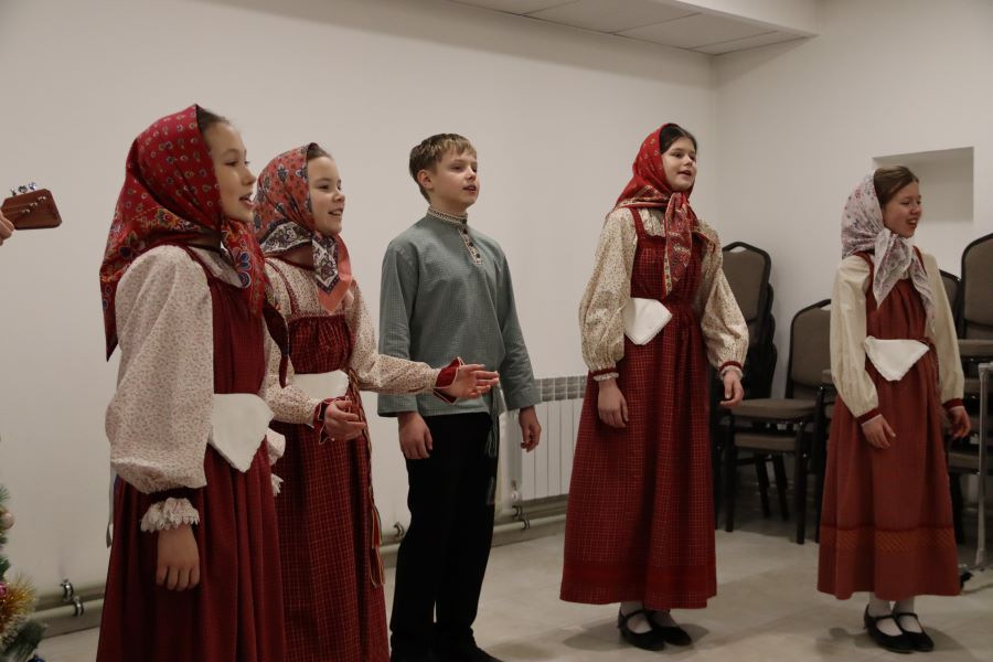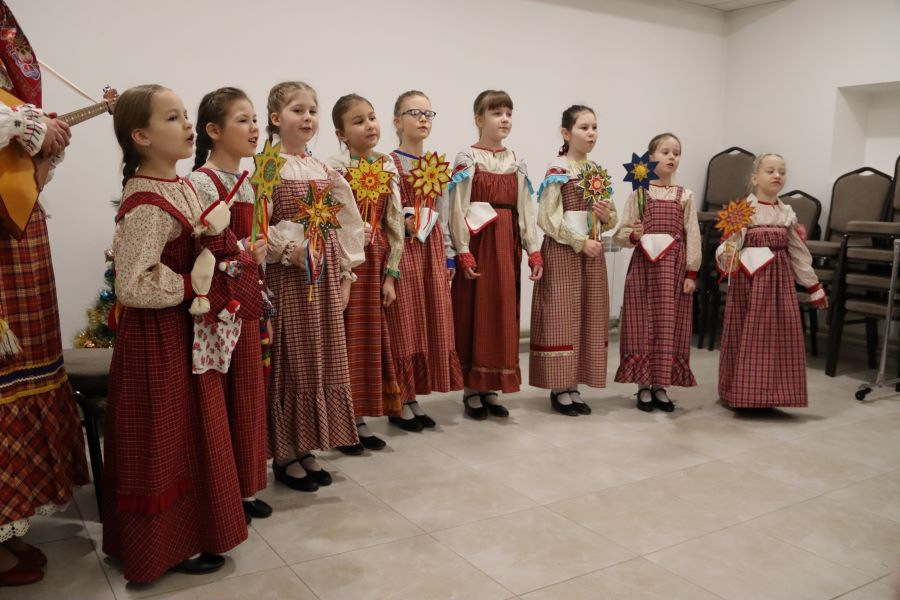 Участники фольклорного ансамбля «Крупеница» (рук. Потапова Е.А., Перевалова Д.Д., конц. Ромашков Н.В., Чуракова И.О.) детской школы искусств «Фольклорная» спели колядки рождественские песни, а также поиграли с детьми в старинные игры и забавы.