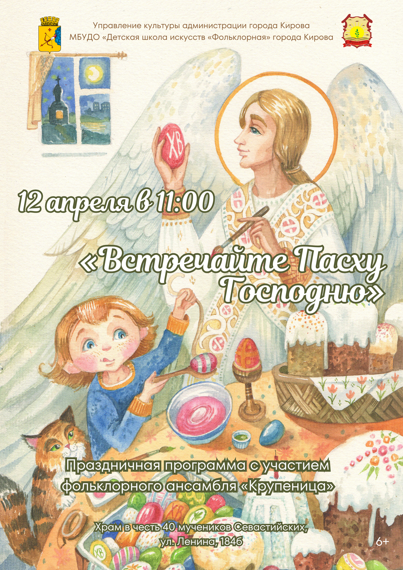 12 апреля в 11:00 во дворе Храма в честь 40 мучеников Севастийских (ул. Ленина 184 б) состоится праздничная программа «Встречайте Пасху Господню»